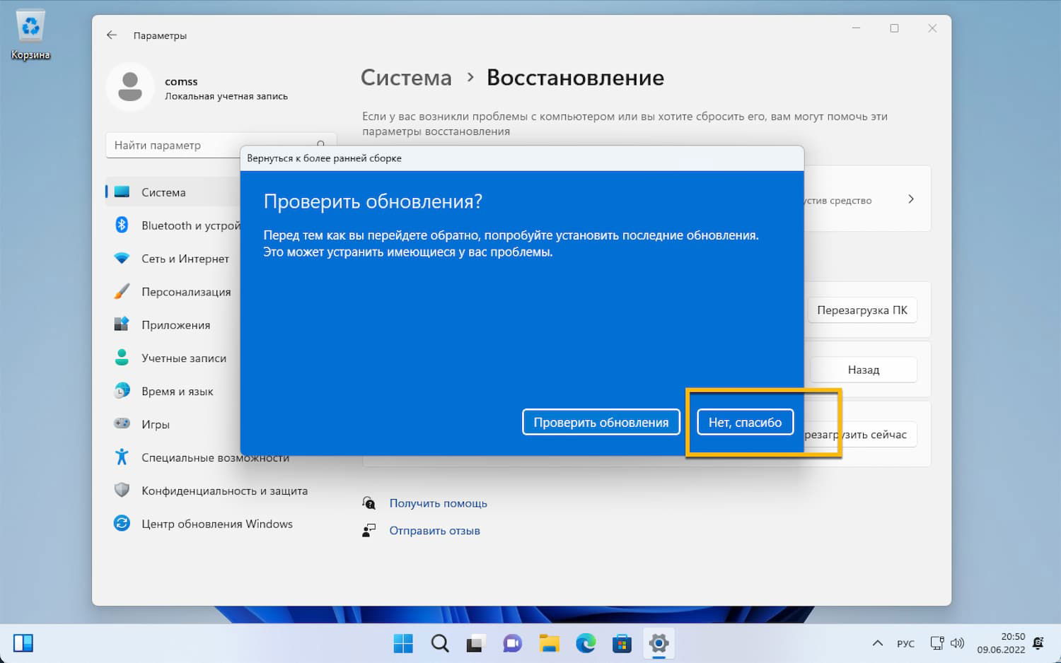 Как вернуться с Windows 11, версия 22H2 на предыдущую сборку