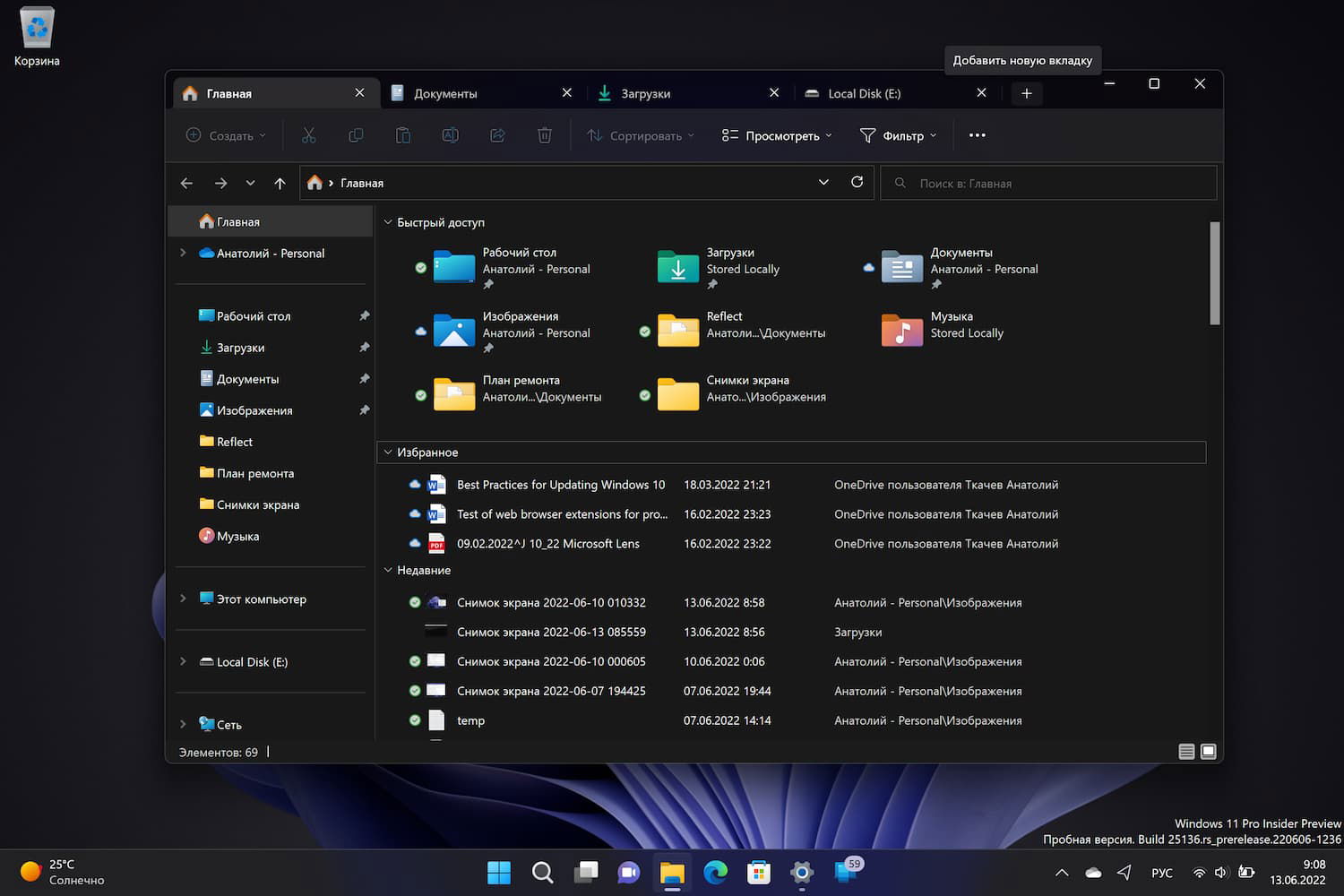 Чтобы помочь вам работать одновременно в нескольких местах проводника файлов, в строке заголовка «Проводника» теперь появились вкладки.