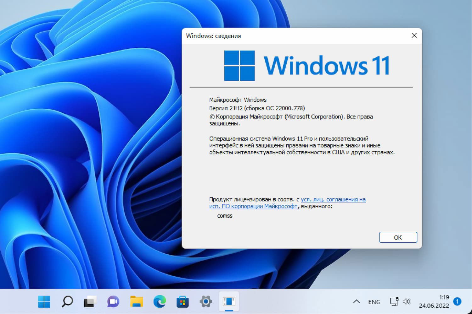Windows 11, Версия 21H2 (Сборка ОС 22000.778)