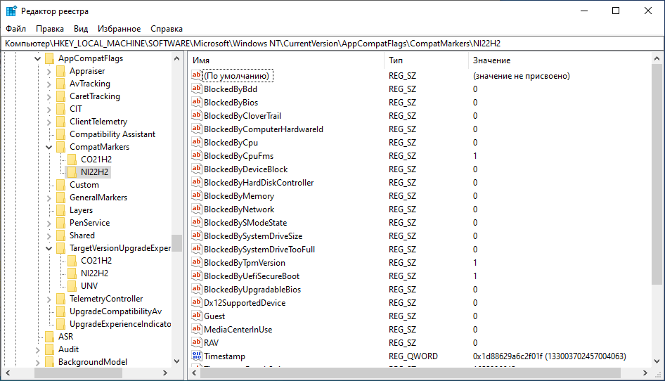 HKLM\SOFTWARE\Microsoft\Windows NT\CurrentVersion\AppCompatFlags\TargetVersionUpgradeExperienceIndicators\NI22H2