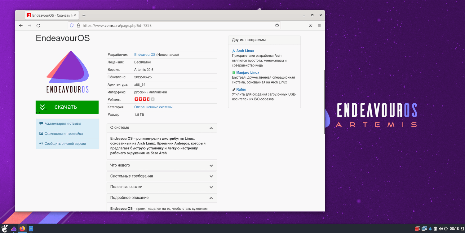 EndeavourOS Artemis 22.6 поставляется с ядром Linux 5.18 и графическим стеком Mesa 22.1.