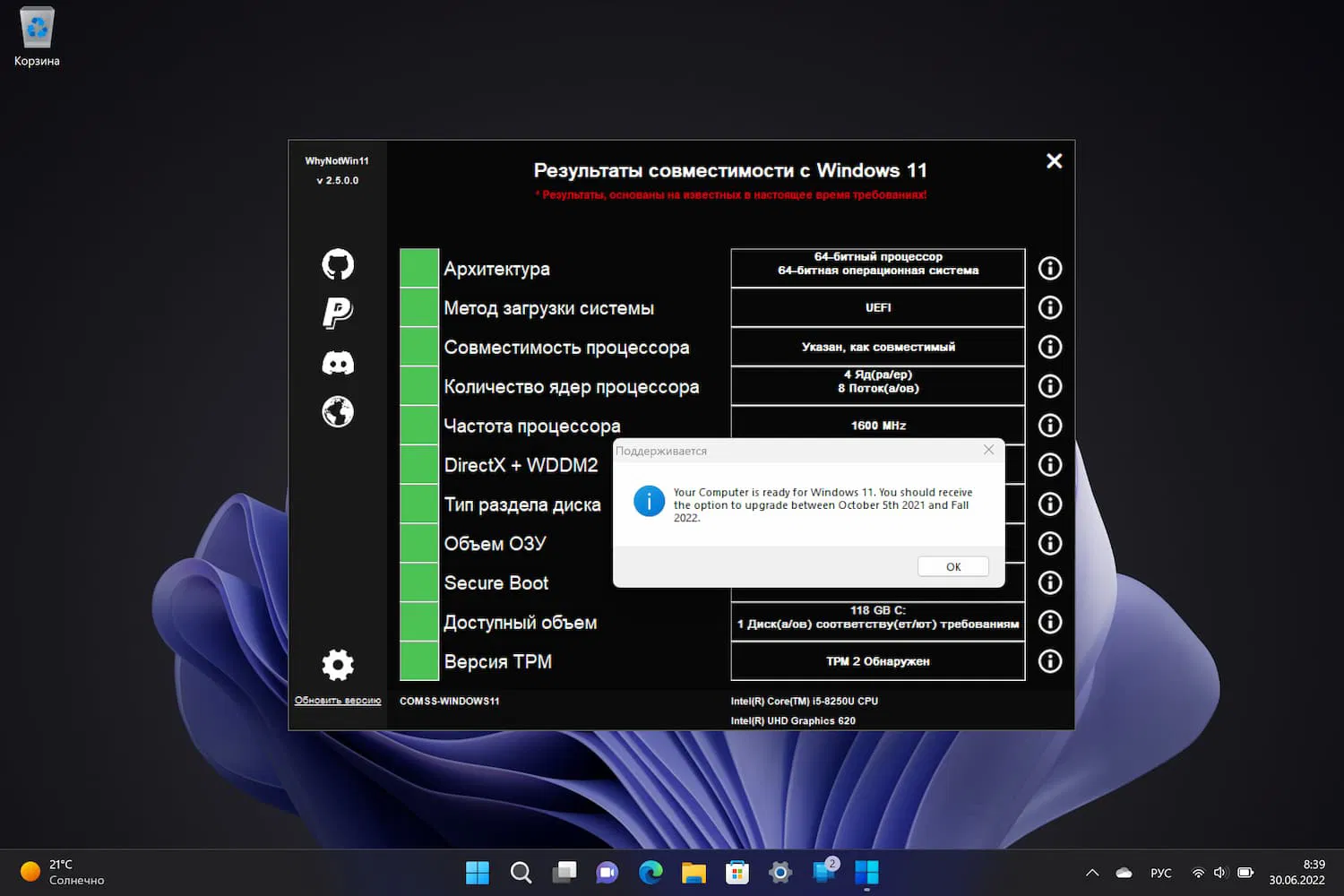 Устройство считается совместимым, если будут успешно пройдены и обозначены зеленым цветом все проверки. Хотя во время установки Windows 11 можно обойти некоторые проверки системных требований, данное действие может привести к проблемам в будущем, включая блокировку последующих обновлений.