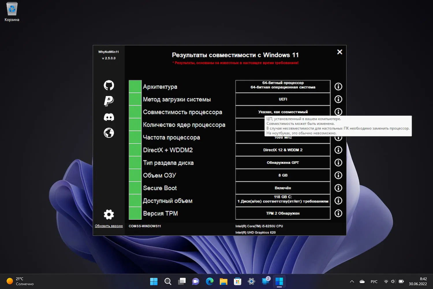 WhyNotWin11 — полезный инструмент, особенно для пользователей, использующих более старые версии Windows, поскольку он предоставляет исчерпывающую информацию о совместимости устройства с Windows 11.