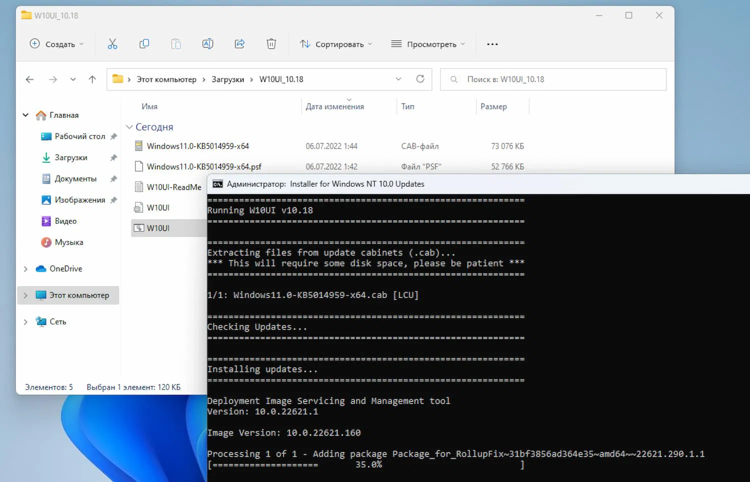 - Скачайте два файла обновления KB5014959 (.CAB и .PSF) для выбранной платформы (x64 или ARM64) и поместите в папку W10UI_10.18.