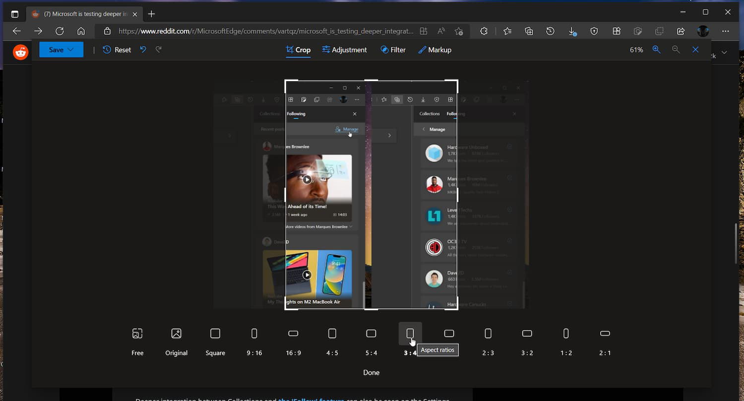 Пользователям Windows новый редактор изображений в Edge может напомнить редактор из приложения «Фотографии». Интерфейс выглядит аналогично, но имеет несколько небольших изменений.