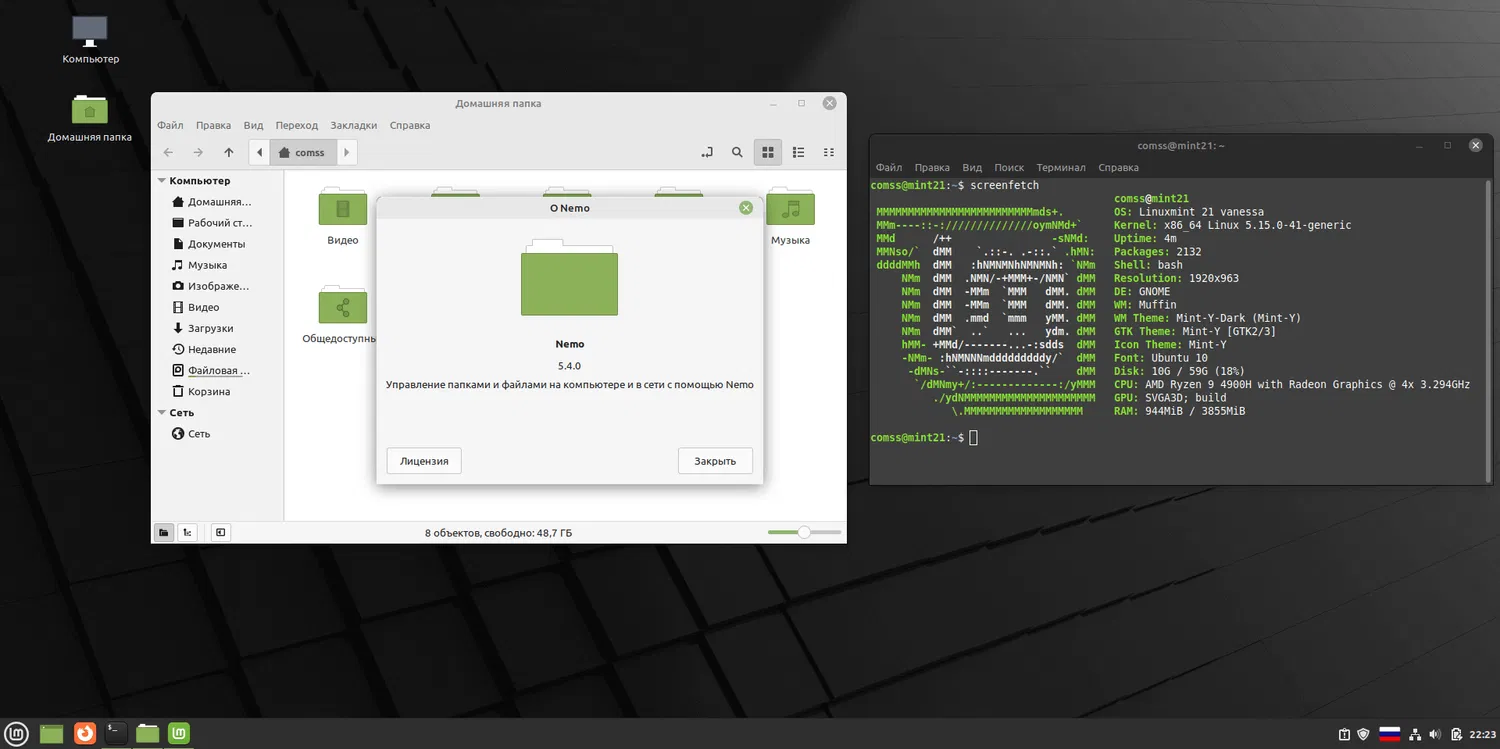 Linux Mint 21 поставляется не только с более новыми основными компонентами (например, более новым ядром Linux (ядро 5.15 LTS), графическим стеком Mesa, GCC и другими компонентами из Ubuntu 22.04 LTS, но и с более новой версией рабочего окружения Cinnamon, которую непосредственно разрабатывают создатели дистрибутива Linux Mint, а именно Cinnamon 5.4.