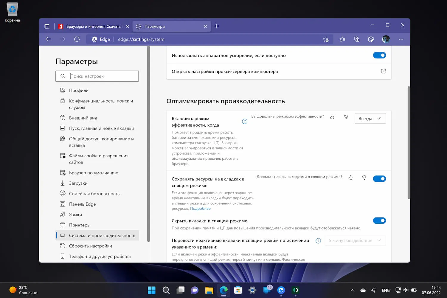 В начале 2022 года Microsoft улучшила скорость отклика и производительность Edge на основе Chromium за счет интеграции спящего режима вкладок.