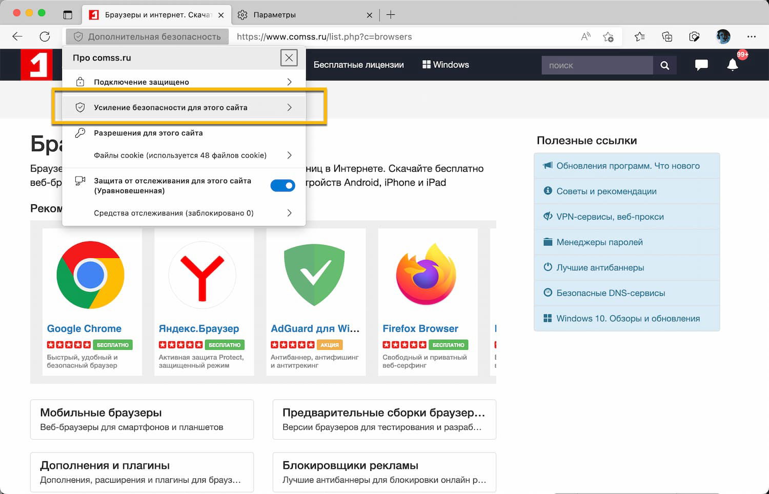 Как настроить режим «Усиление безопасности в Интернете» в Microsoft Edge