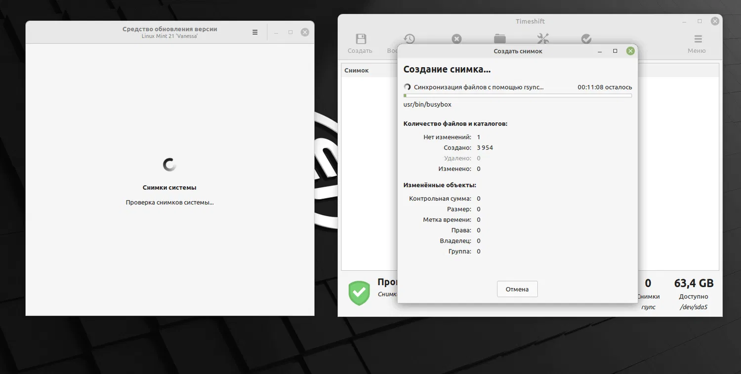 - Выполните резервное копирование с помощью программы Timeshift, как того просит инструмент обновления.