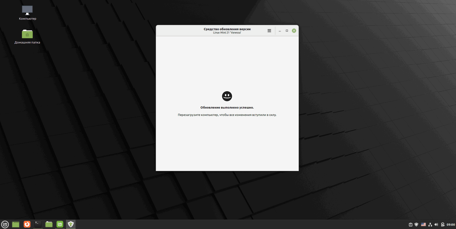 Поздравляю, вы успешно обновили систему до Linux Mint 21.0 «Vanessa».