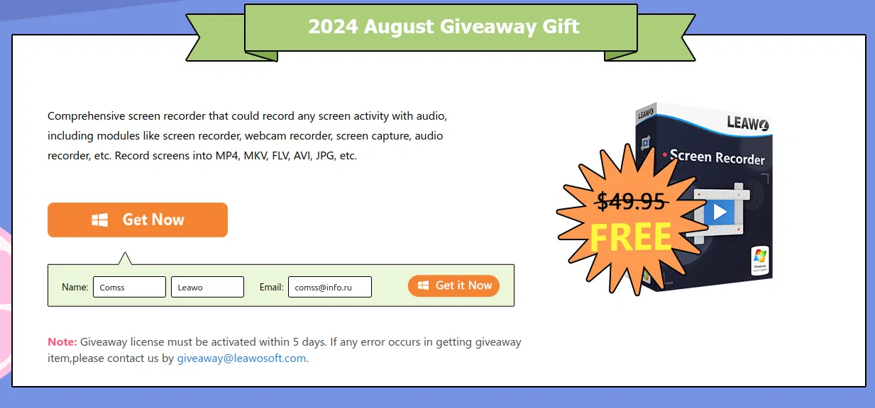 Чтобы получить бесплатную лицензию Leawo Screen Recorder на 1 год выполните следующие действия: