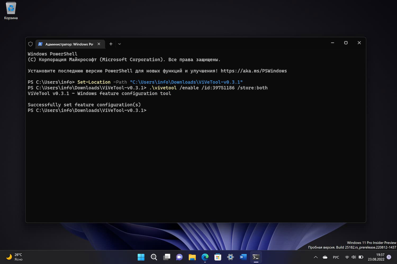 Для принудительной активации функции потребуется использовать инструмент ViveTool: