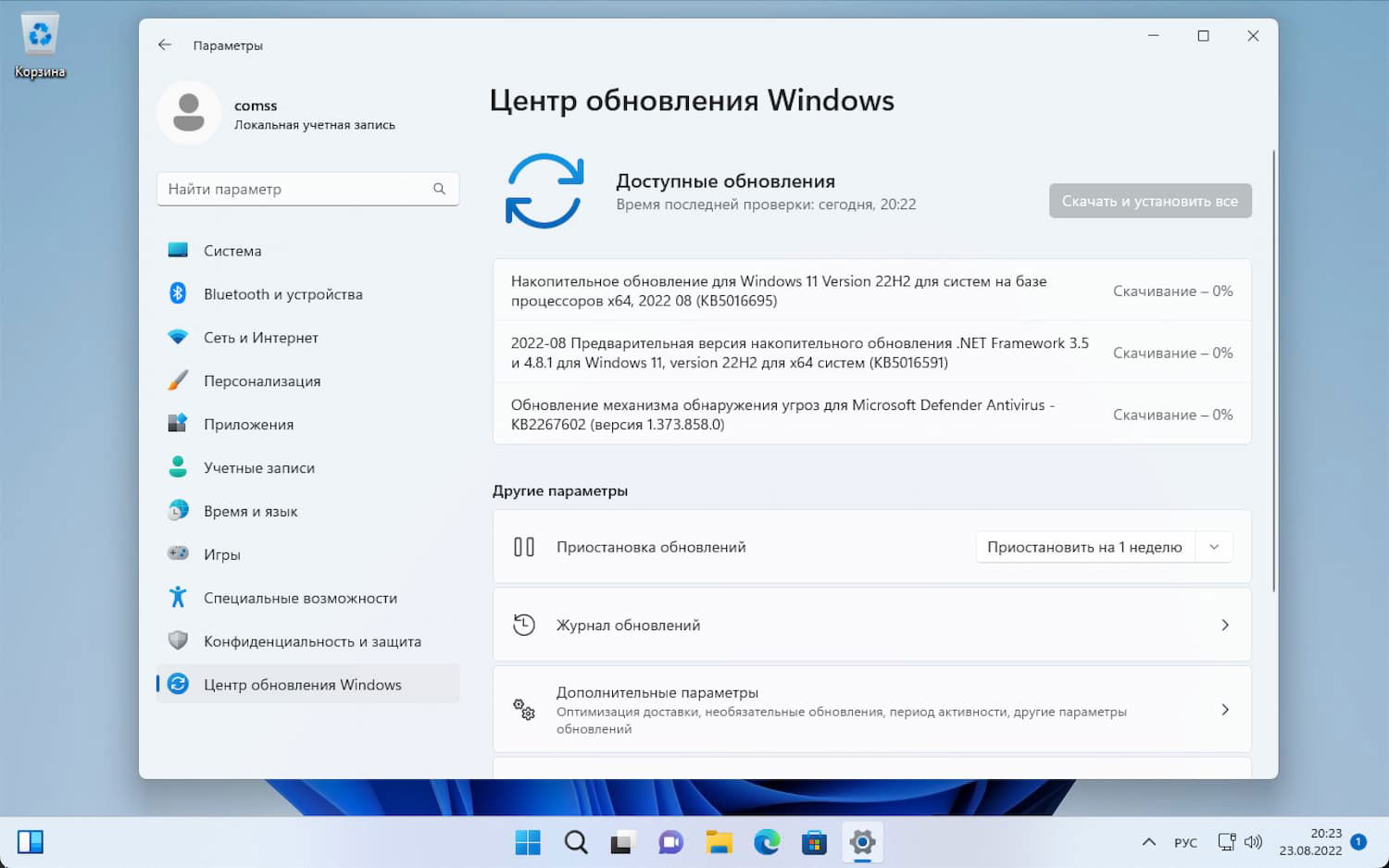 Перейдите в меню Параметры > Центр обновления Windows и нажмите Проверить наличие обновлений. Для завершения установки потребуется перезагрузка компьютера.