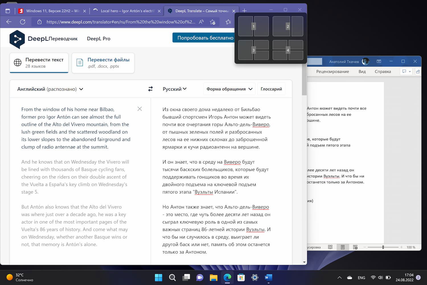 В третьей части серии публикации про изменения Windows 11, версия 22H2, после меню «Пуск» и Панели задач, хотелось бы затронуть тему функции Snap Assist или макетов привязки.