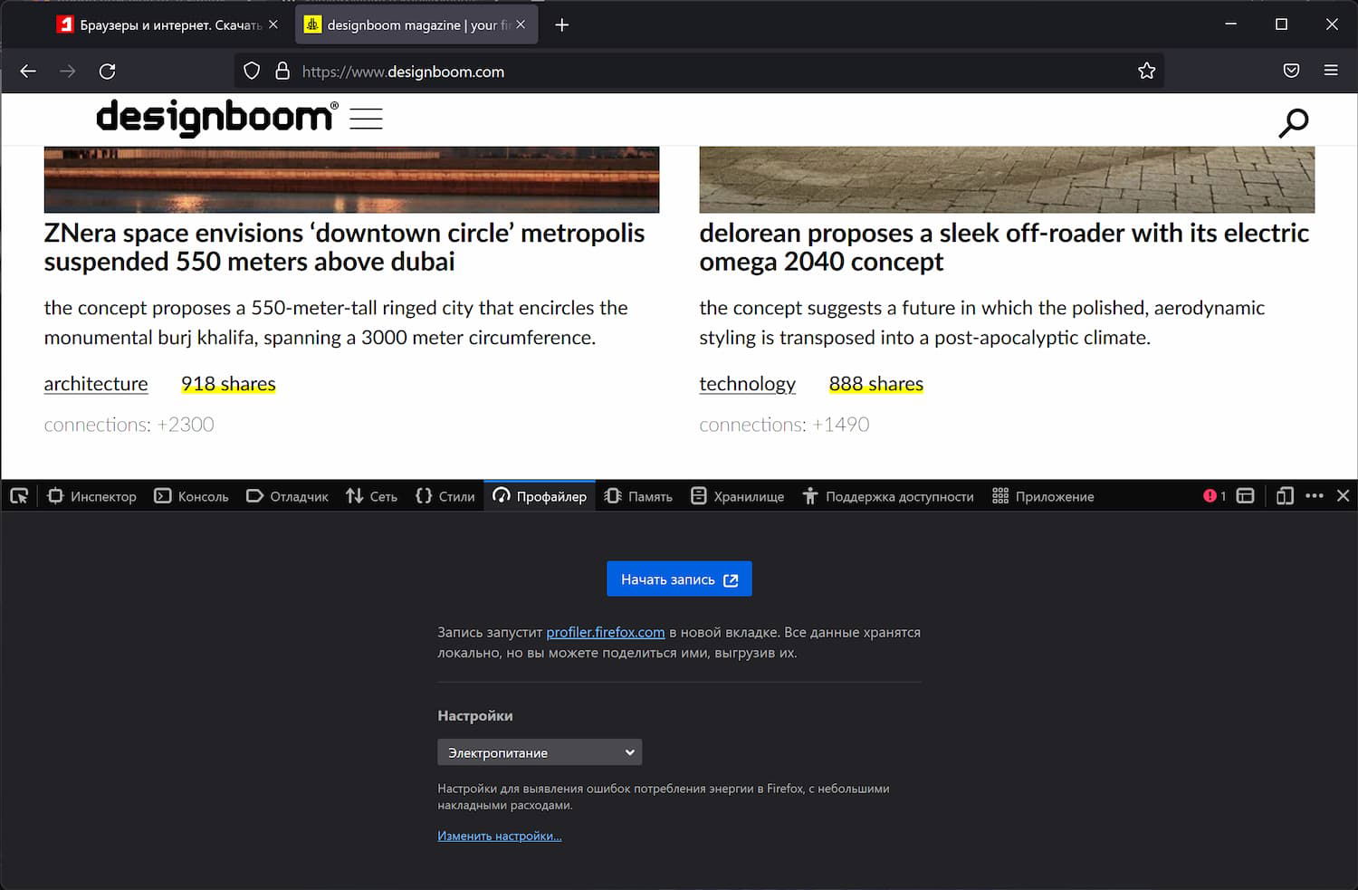 - Сайт профайлера Firefox загрузится автоматически.