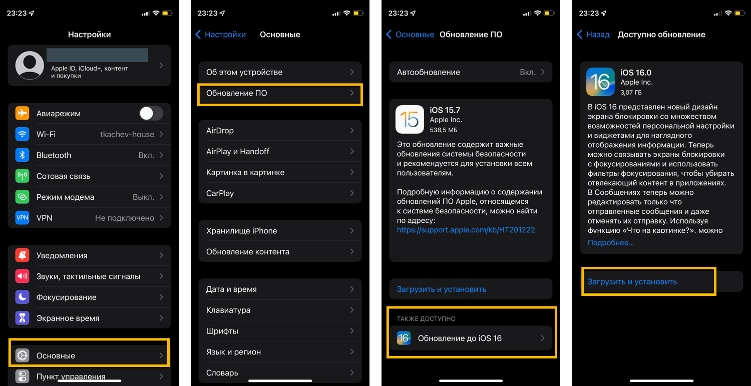 В разделе Также доступно выберите Обновление до iOS 16 и затем нажмите Загрузить и установить.