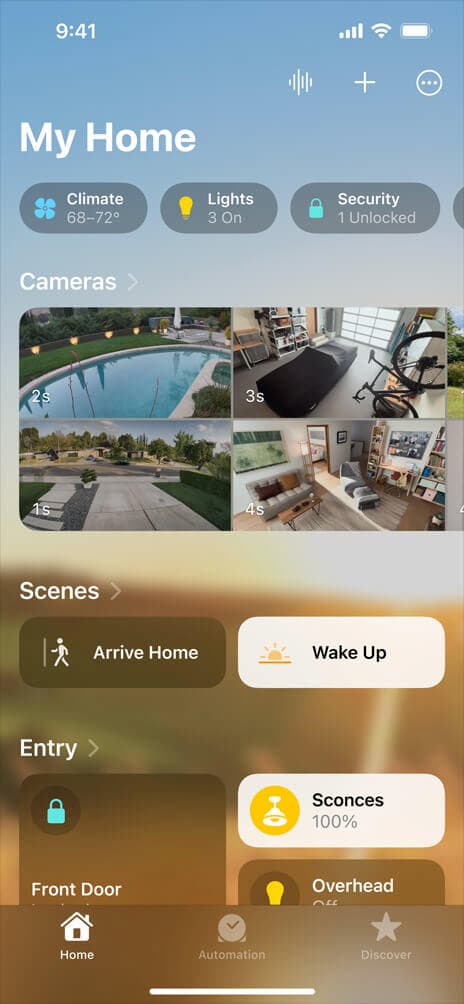 - В новом интерфейсе приложения «Дом» еще удобнее находить, просматривать, упорядочивать и контролировать любые аксессуары умного дома.