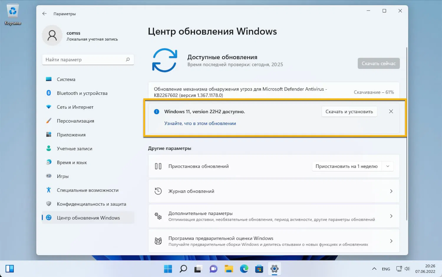Если ваше устройство совместимо и готово, вы можете получить обновление Windows 11 2022 непосредственно из Центра обновления Windows, выбрав приложение Параметры > Центр обновления Windows > Проверить наличие обновлений. Другие доступные способы установки вы можете найти в нашем обзоре: