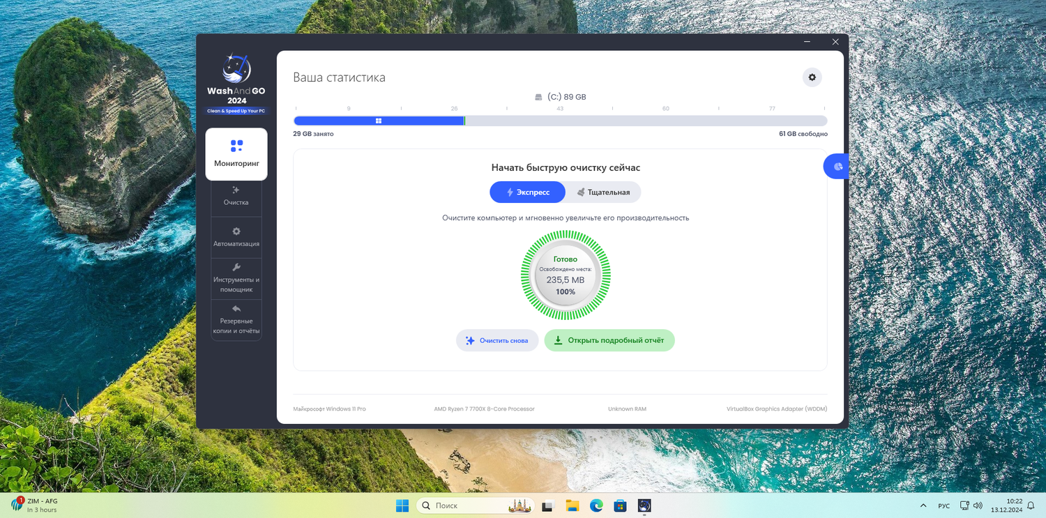 - Все дубликаты файлов, устаревшие приложения, временные системные файлы и многое другое не только приводят к захламлению компьютера, но и значительно снижают его скорость и производительность. С помощью WashAndGo вы можете провести правильную очистку и сделать свой ПК таким же мощным, как в первый день.