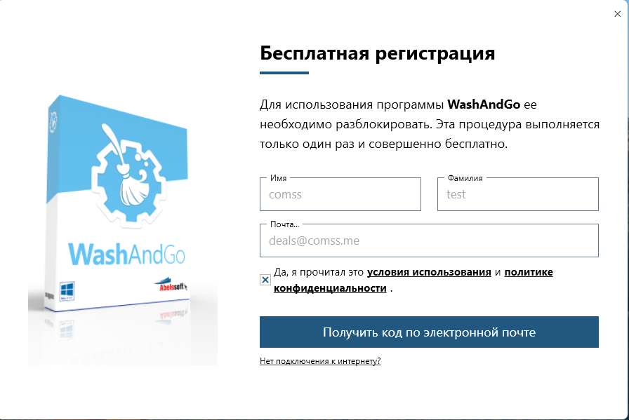 Для получения бесплатной лицензии Abelssoft WashAndGo для Windows выполните следующие действия:
