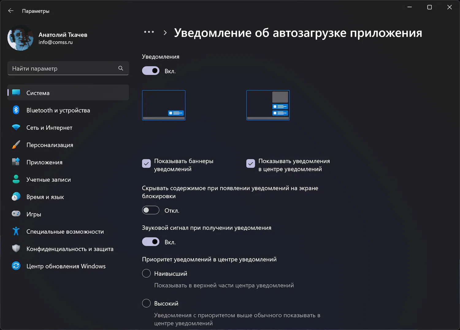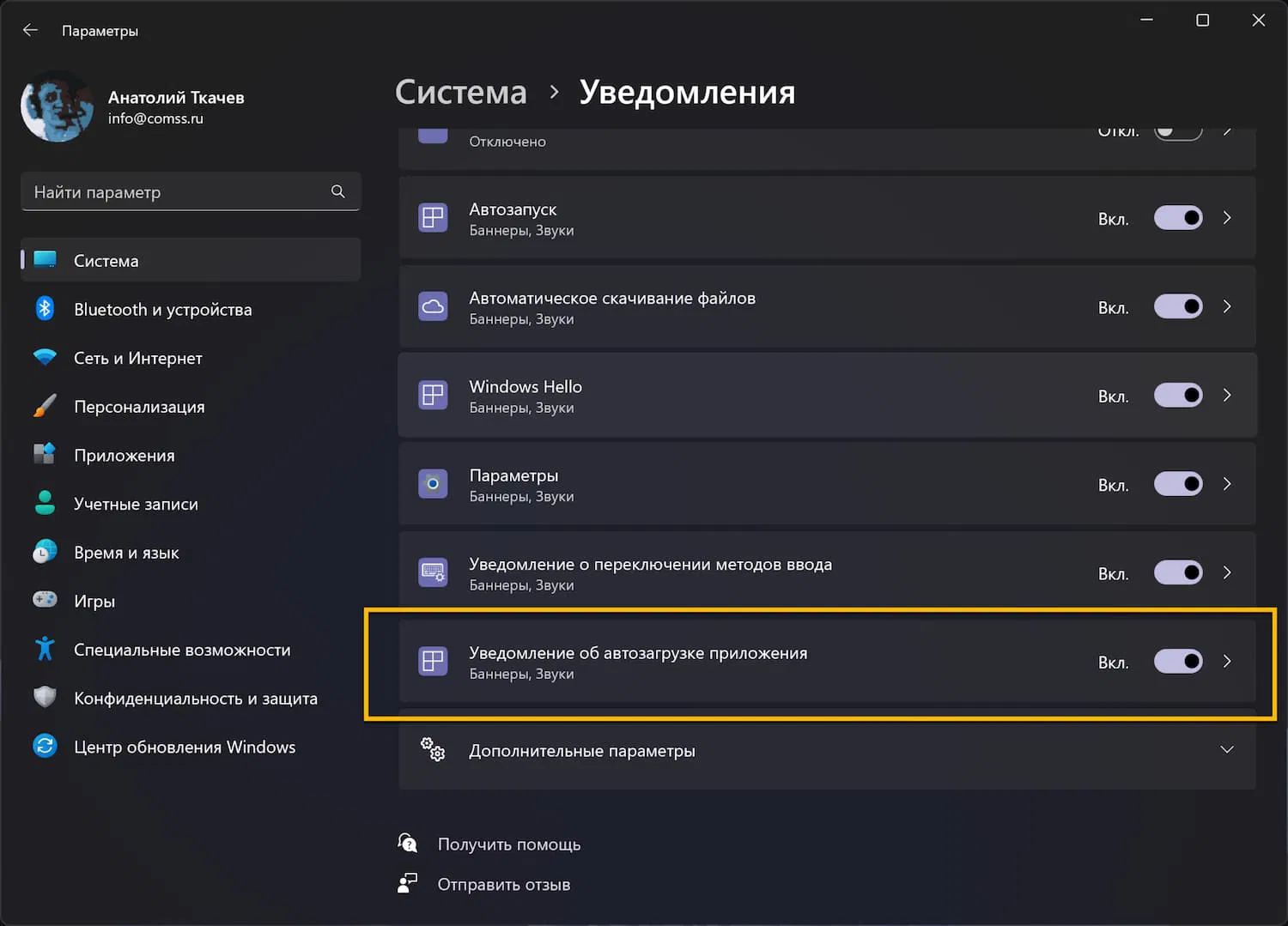 Включить уведомление об автозагрузке приложения в Windows 11 можно следующим образом: