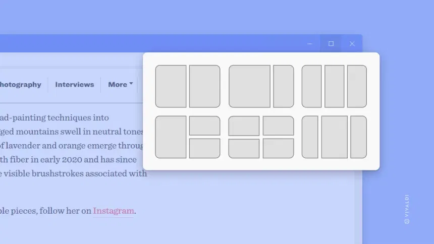 Наконец, Vivaldi 5.5 получил поддержку макетов привязки в Windows 11. Просто наведите указатель мыши на значок развертывания в интерфейсе Vivaldi, чтобы увидеть доступные параметры макета.