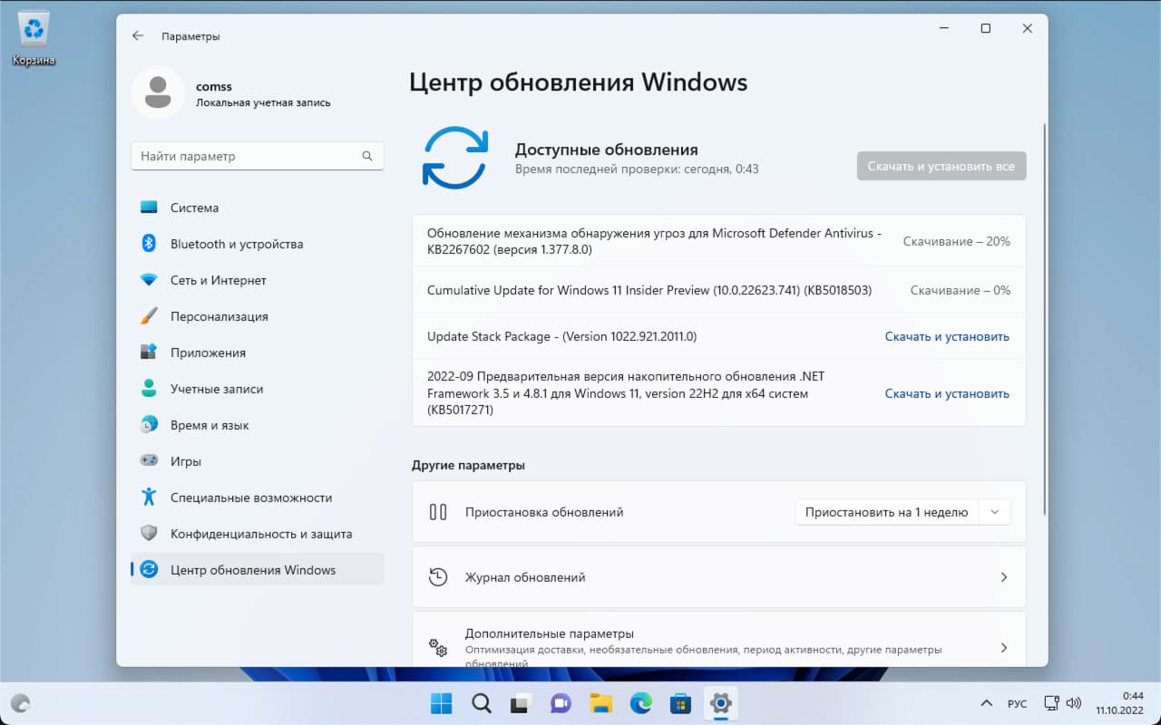Перейдите в меню Параметры > Центр обновления Windows и нажмите Проверить наличие обновлений.