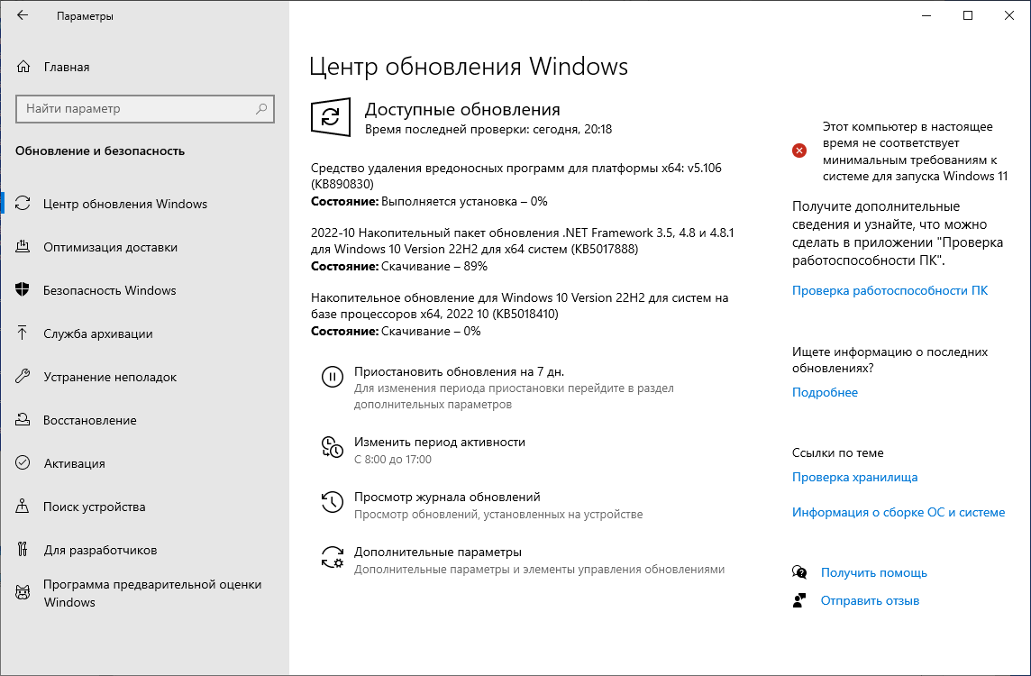 Накопительный пакет обновления KB5018410 (Build 19045.2130) предназначен для Windows 10 версии 22H2 на базе процессоров x86, x64 (amd64), ARM64. Новая Windows 10, версия 22H2 тестируется на канале Release Preview. Для перехода на «обновление функций до Windows 10, версия 22H2» доступен активационный пакет KB5015684, который применяется к Windows 10, версия 21H2 и 21H1.