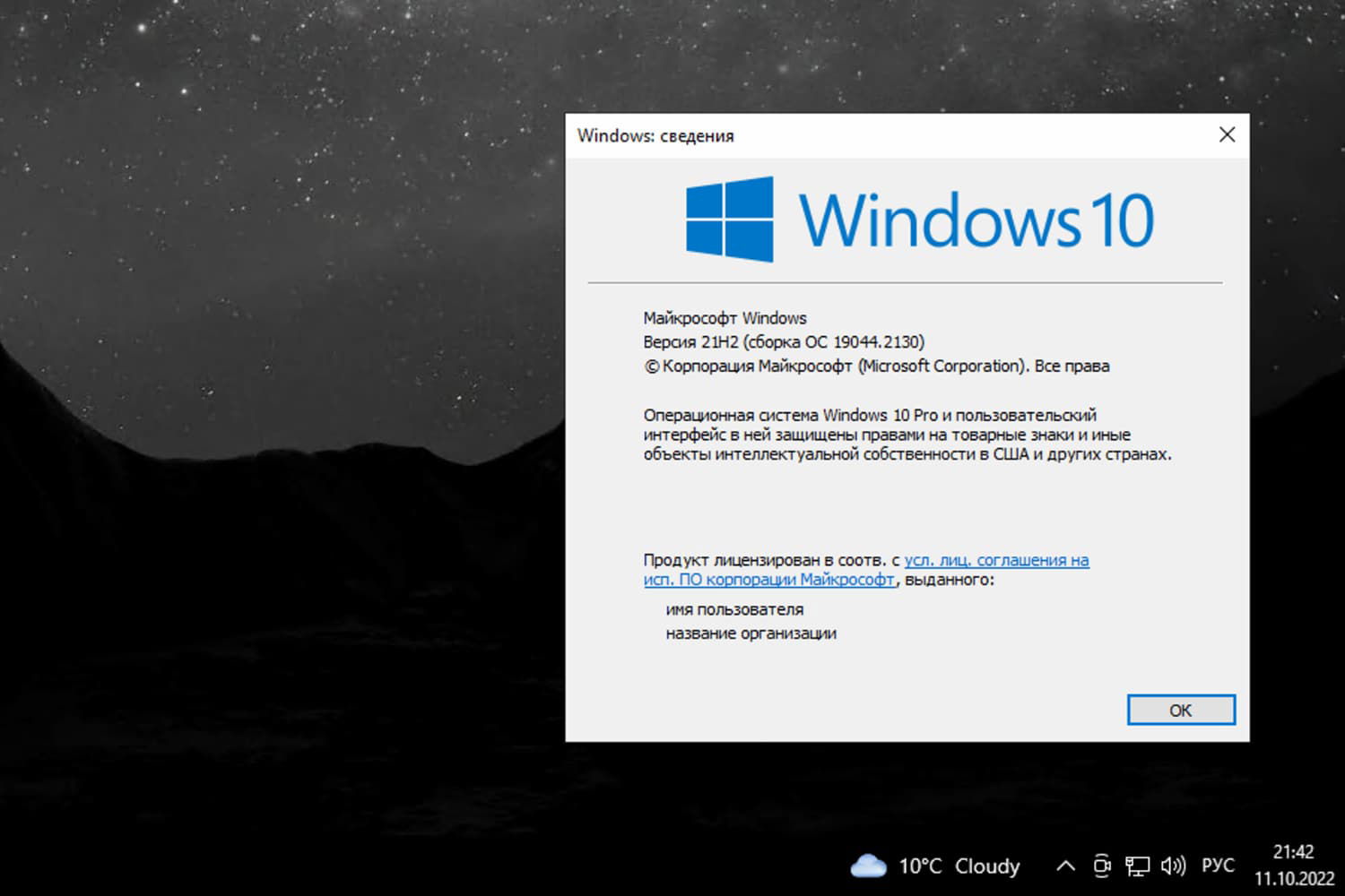 Windows 10, версия 21H2 (сборка ОС 19044.2130)