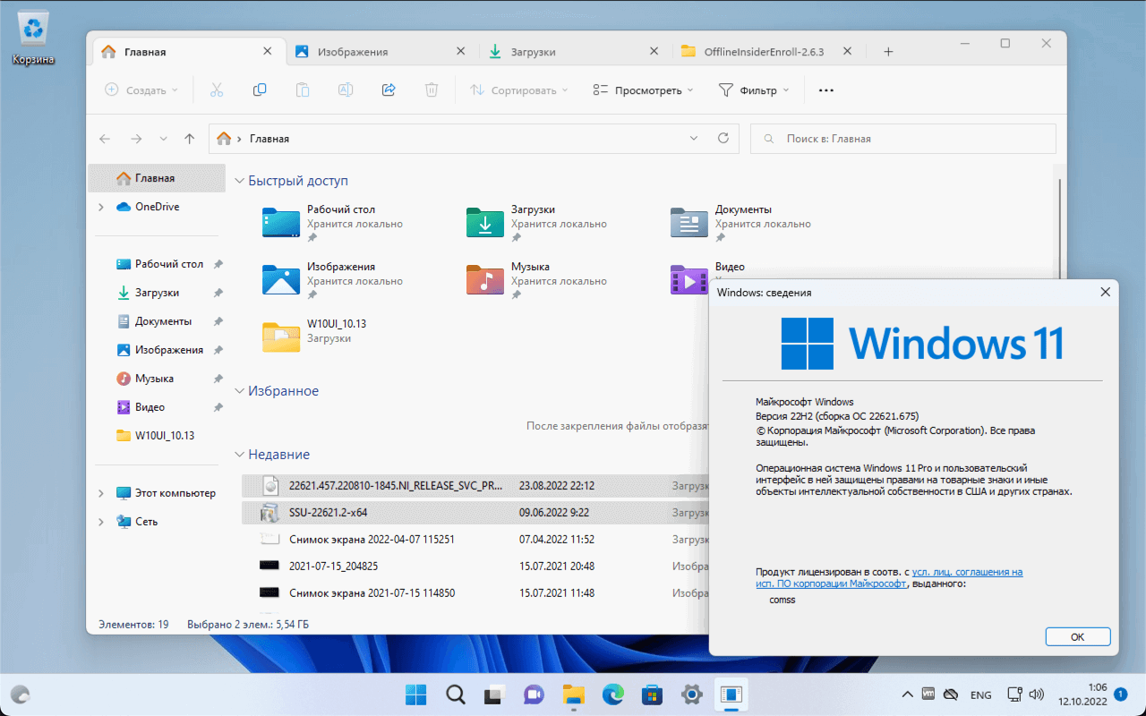 Windows 11, Версия 22H2 (Сборка ОС 22621.675)