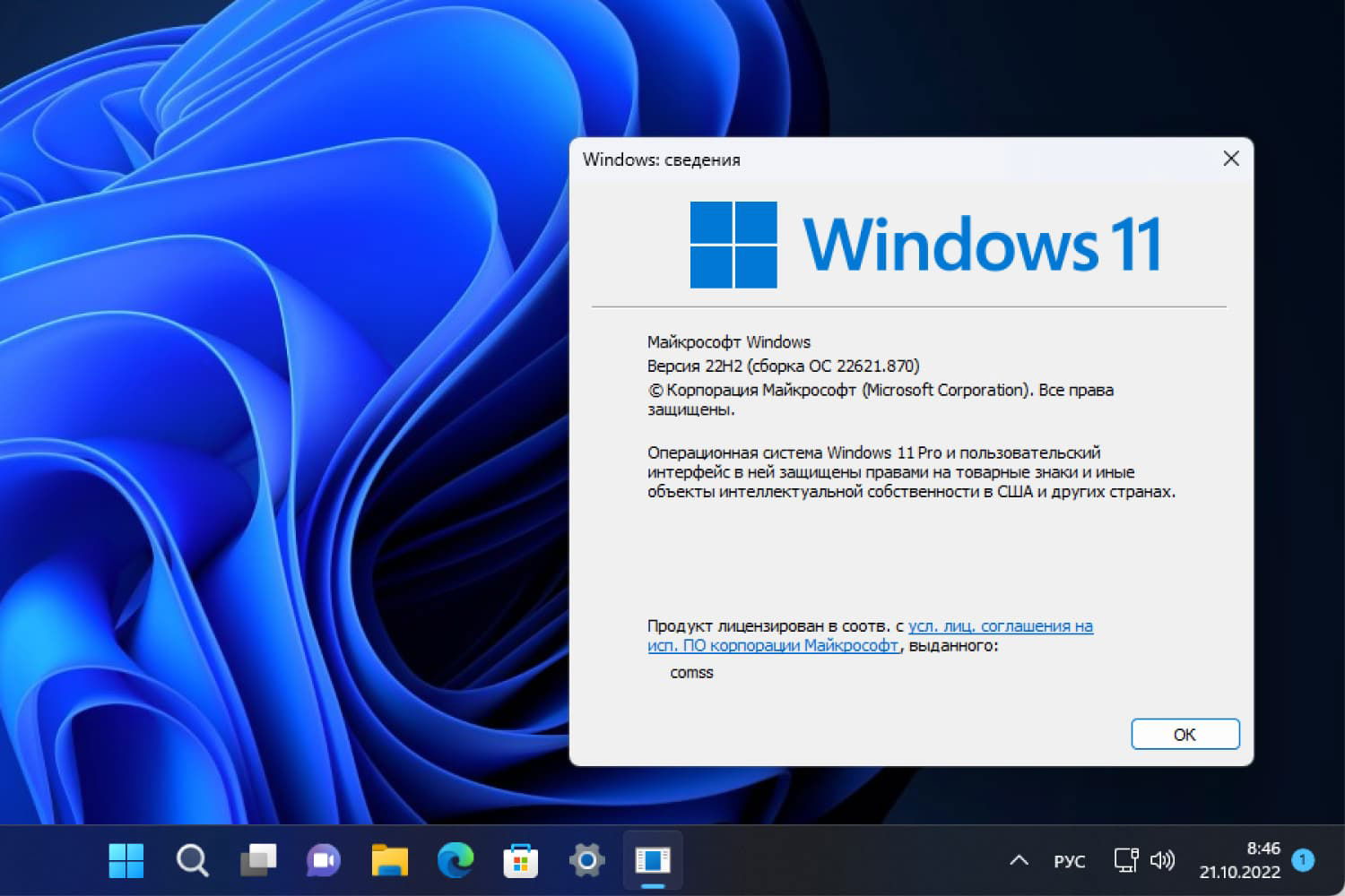 Windows 11, Версия 22H2 (Сборка ОС 22621.870)