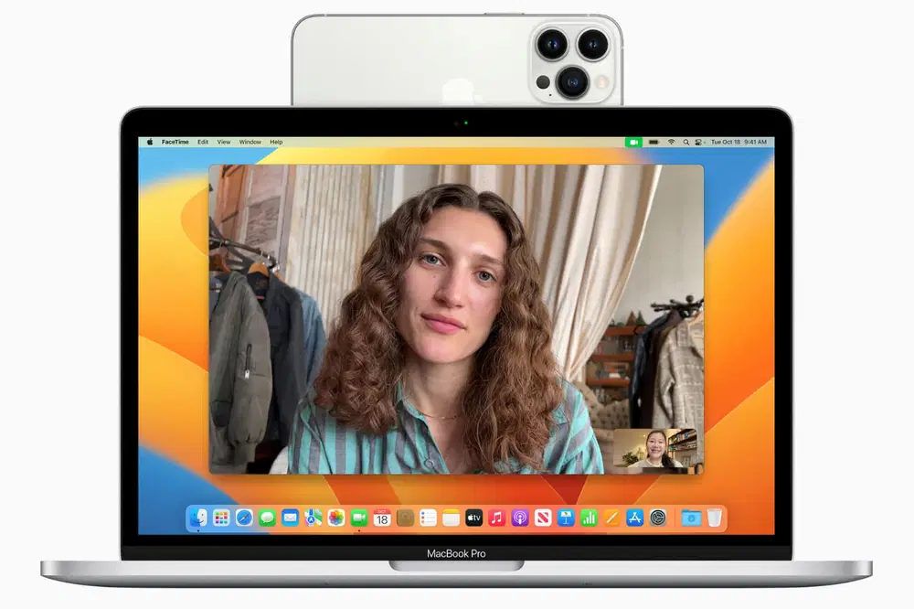 Новая функция Continuity Camera избавляет от необходимости использовать встроенную камеру Mac низкого качества и переключиться на iPhone в качестве веб-камеры для Mac. iPhone можно расположить прямо на Mac с помощью подставки с возможностью автоматического подключения. Desk View использует сверхширокий вид, чтобы показать свой стол, если вам нужно что-то продемонстрировать. Также предусмотрена поддержка Center Stage и Studio Light, эффекта, который освещает ваше лицо и затемняет фон.