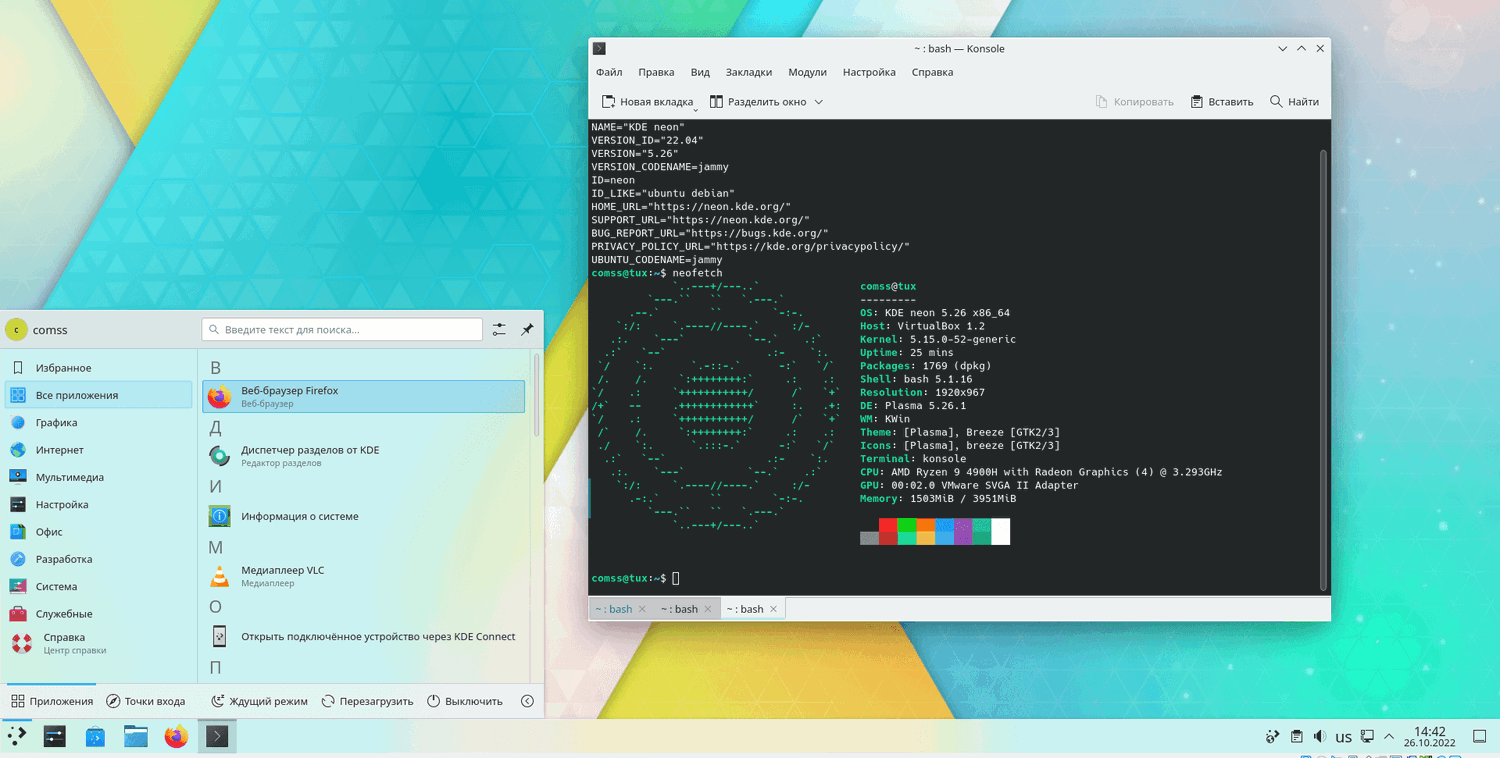Обновление уже установленных систем KDE neon до версии, использующей базу Ubuntu 22.04 станет доступно начиная с сегодняшнего дня, 26 октября.