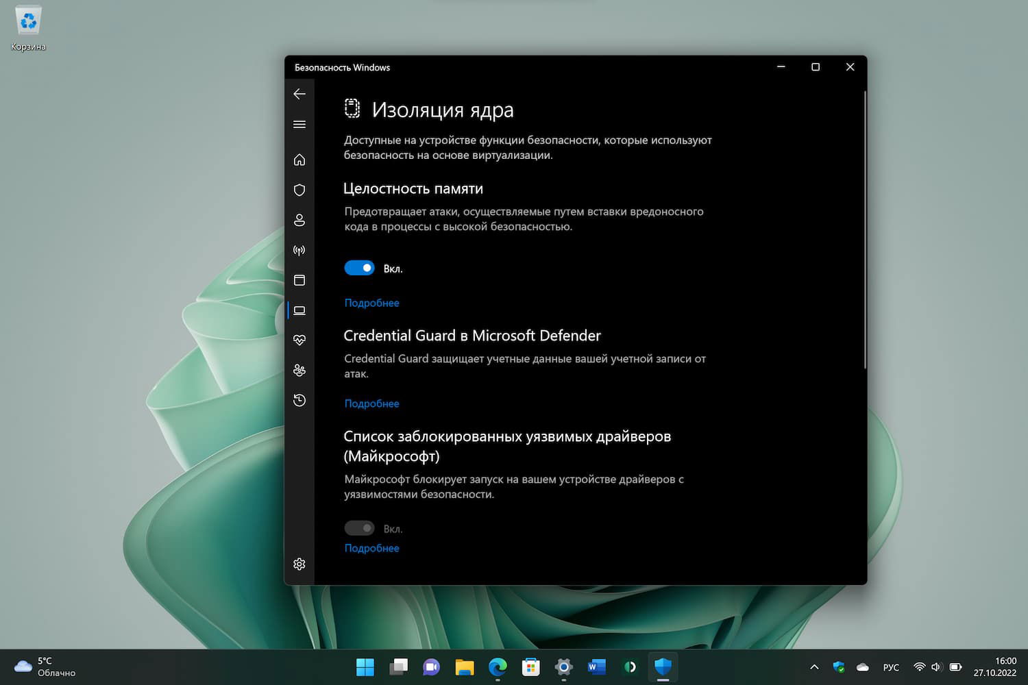 Тем не менее, одна из исправленных проблем все же связана с безопасностью. «Список заблокированных уязвимых драйверов (Майкрософт)» (Vulnerable Driver Blocklist) — функция усиления безопасности, представленная Windows 10 версии 1809 и включенная по умолчанию в Windows 11, версия 22H2.