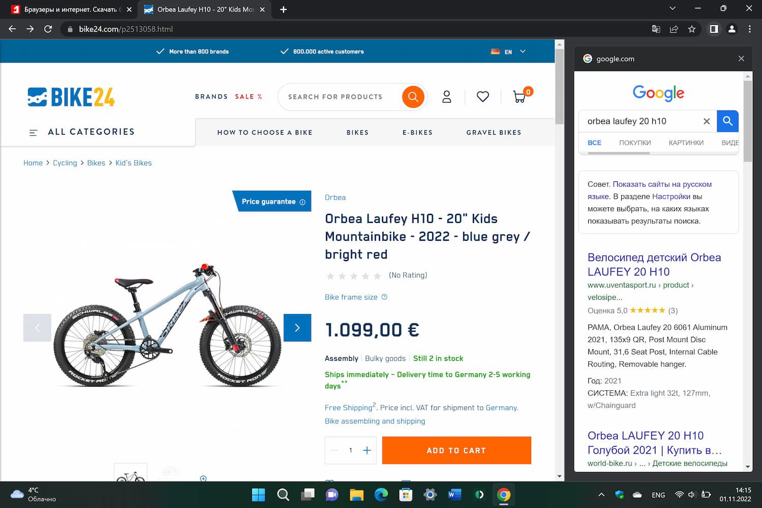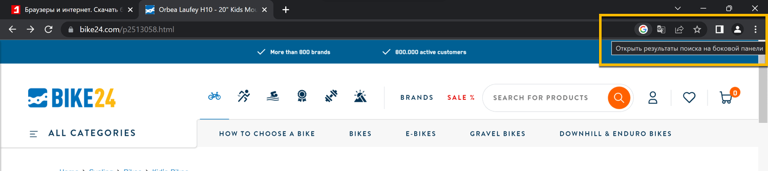 Поиск с боковой панели доступен в Google Chrome 107 Stable и новее.