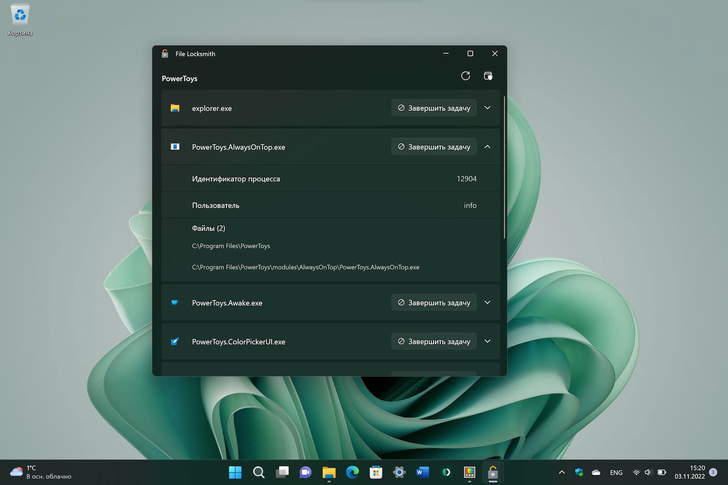 В интерфейсе File Locksmith показаны все процессы, которые используют файл. Пользователи могут завершить процесс, чтобы разблокировать файл. В качестве альтернативы можно вручную закрыть окно программы, но File Locksmith предлагает более быстрый способ для разблокировки файлов.