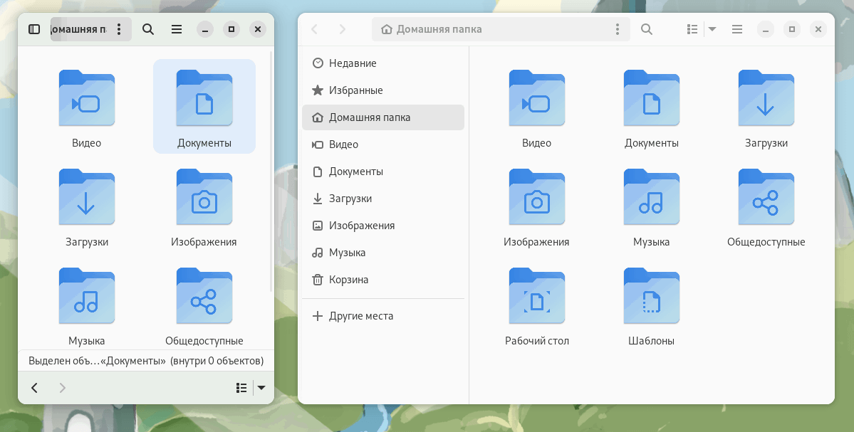 Визуально красивый интерфейс файлового менеджера стал и адаптивным. Теперь им удобно пользоваться на любых устройствах, в том числе смартфонах (например, PinePhone).