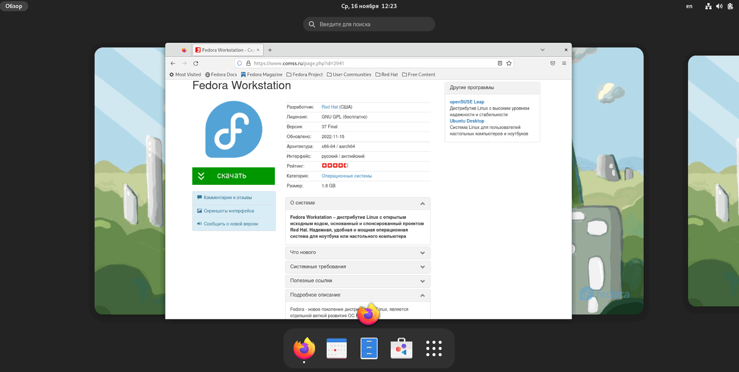 Скачать ISO-образ новой версии Fedora Workstation 37 можно на нашем сайте: