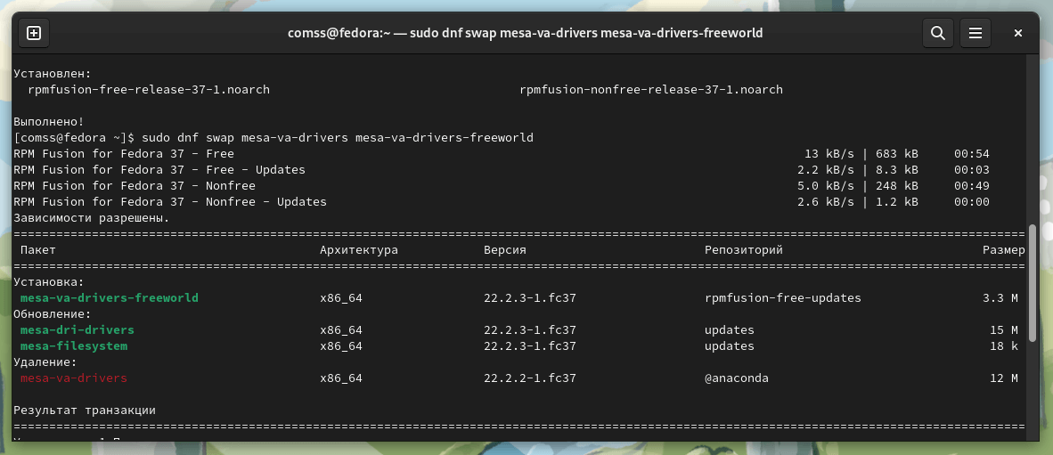 sudo dnf swap mesa-va-drivers mesa-va-drivers-freeworld