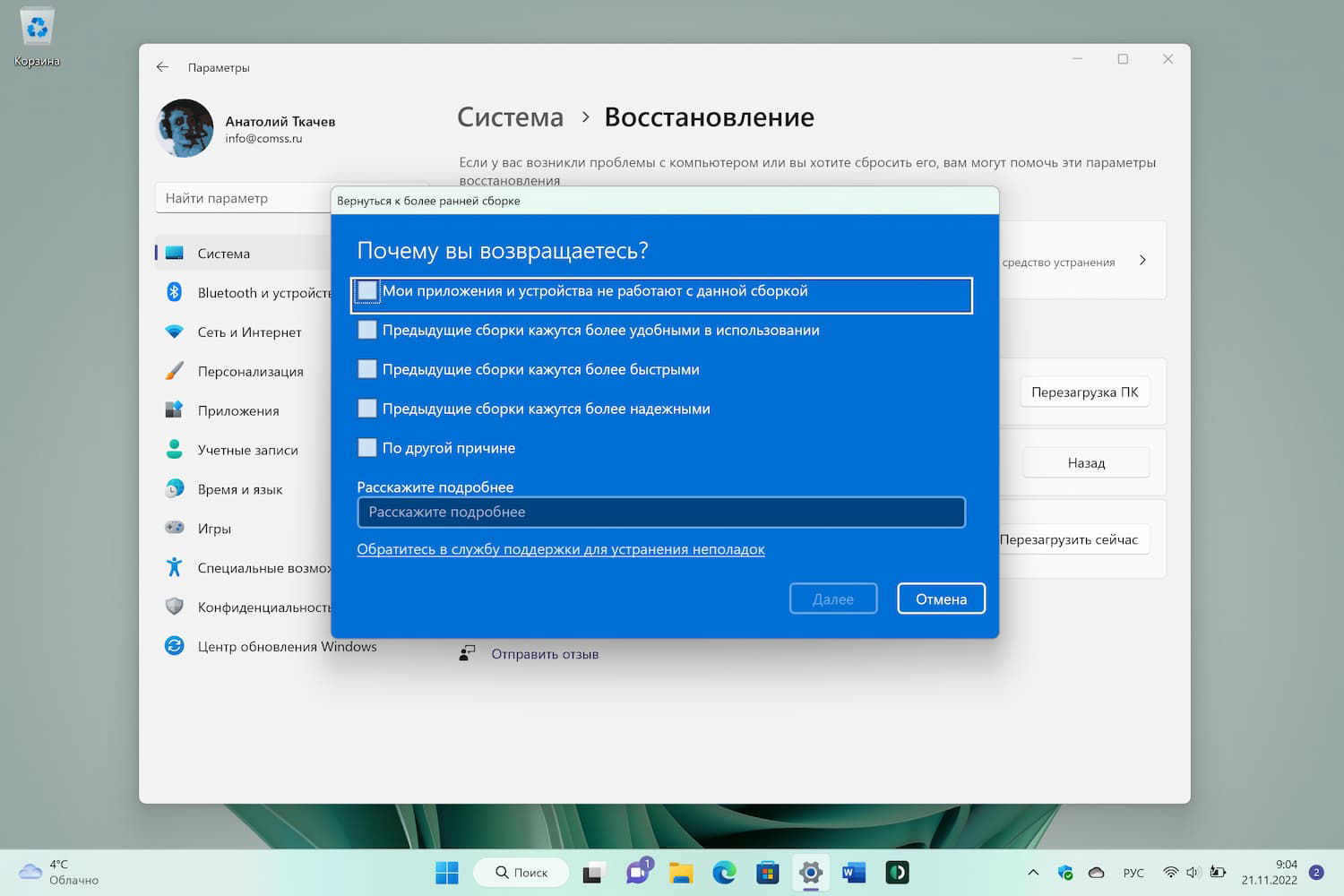 Данным интерфейсом обычный пользователь пользуется далеко не каждый день. Функционал позволяет удалить последнее обновление функций и вернуться к предыдущей сборке программы предварительной оценки Windows. Несмотря на то, что некоторые пользователи даже не знают о существовании этого диалогового окна, его переработка и обновление — это еще один шаг к тому, чтобы сделать Windows 11 более современной, согласованной и красивой.