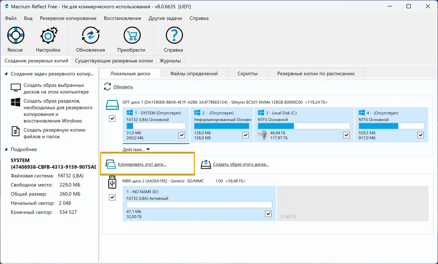 Примечание: это уведомление касается только к Macrium Reflect Free