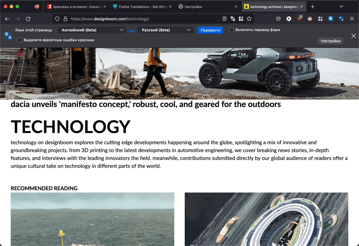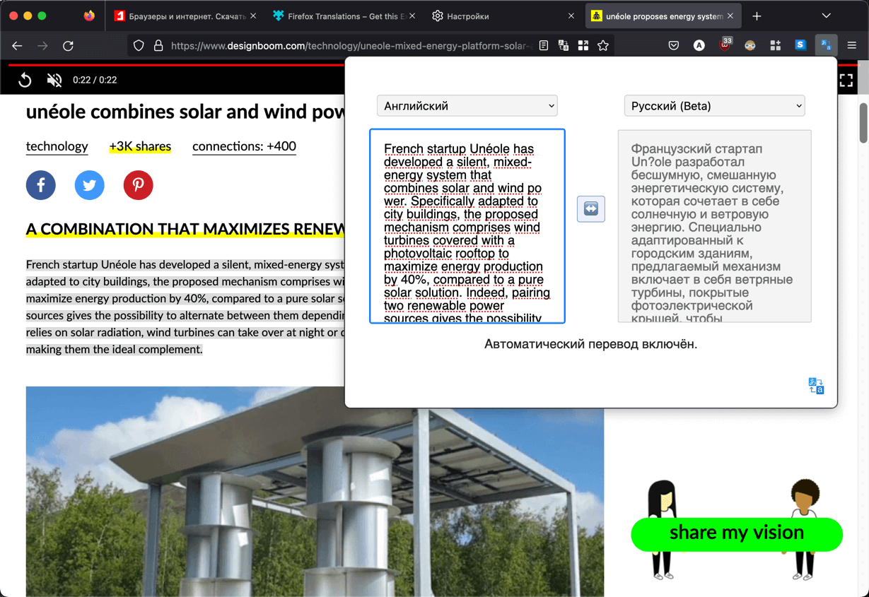 Firefox Translations отличается от большинства встроенных в браузер сервисов перевода. В отличие от Google Translate, Bing Translate или др., Firefox Translations работает в автономном режиме, а значит данные о сайтах и контенте не передаются третьим лицам.