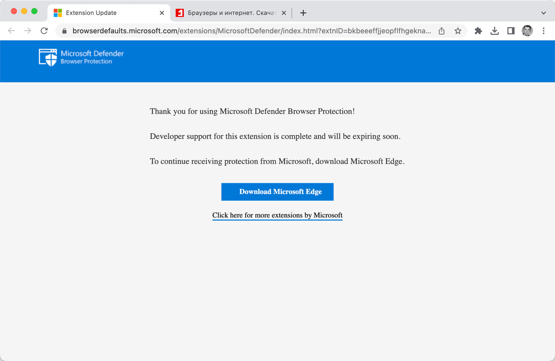 Благодарим вас за использование Microsoft Defender Browser Protection!