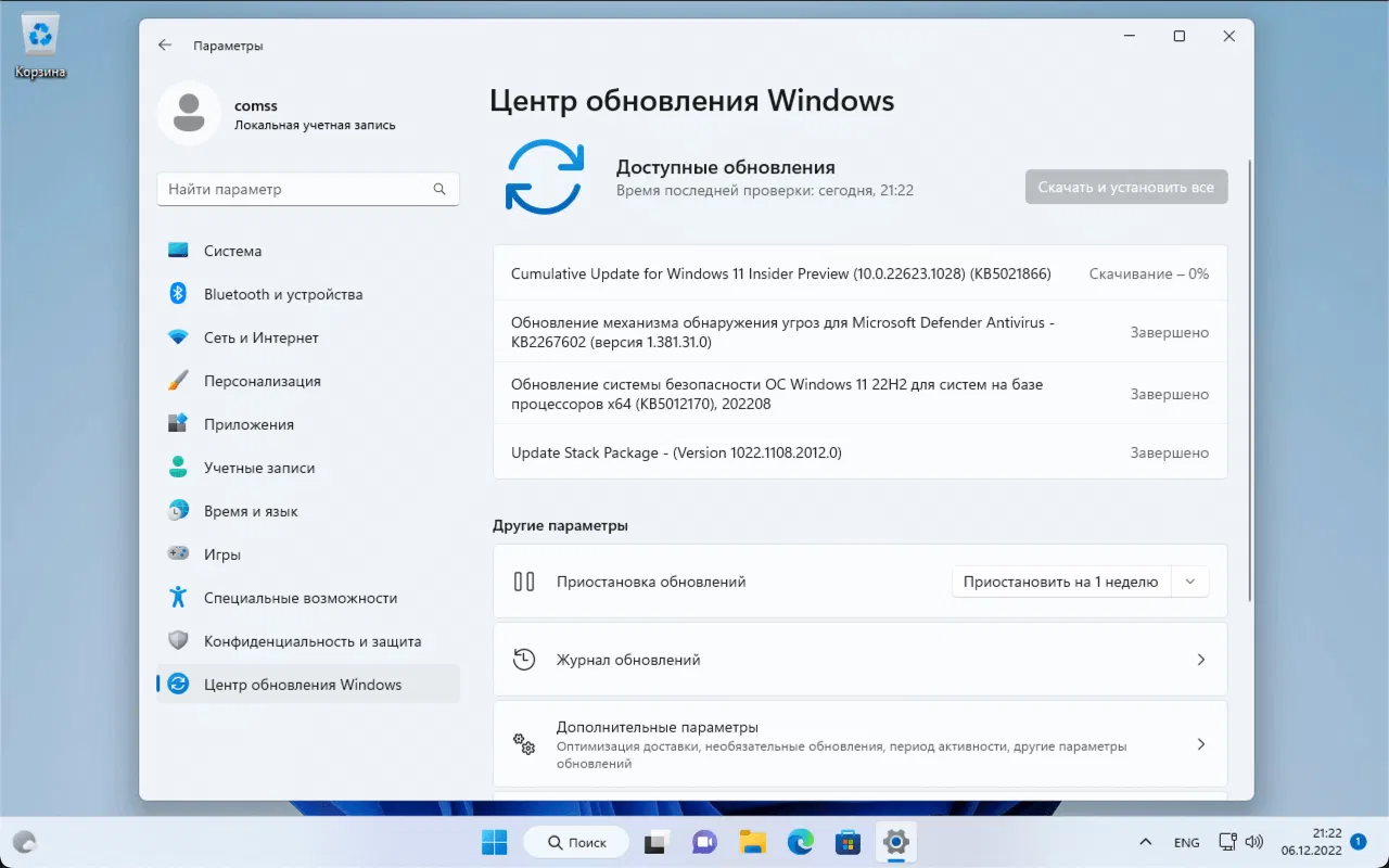 Примечание. Microsoft заблокировала установку обновлений для инсайдеров Windows 11 в России и Беларуси. Для установки Windows 11, Версия 22H2 (Сборка ОС 22623.1028) вы можете использовать наши DNS-серверы: Установка инсайдерских сборок Windows 11 с помощью Comss.one DNS.