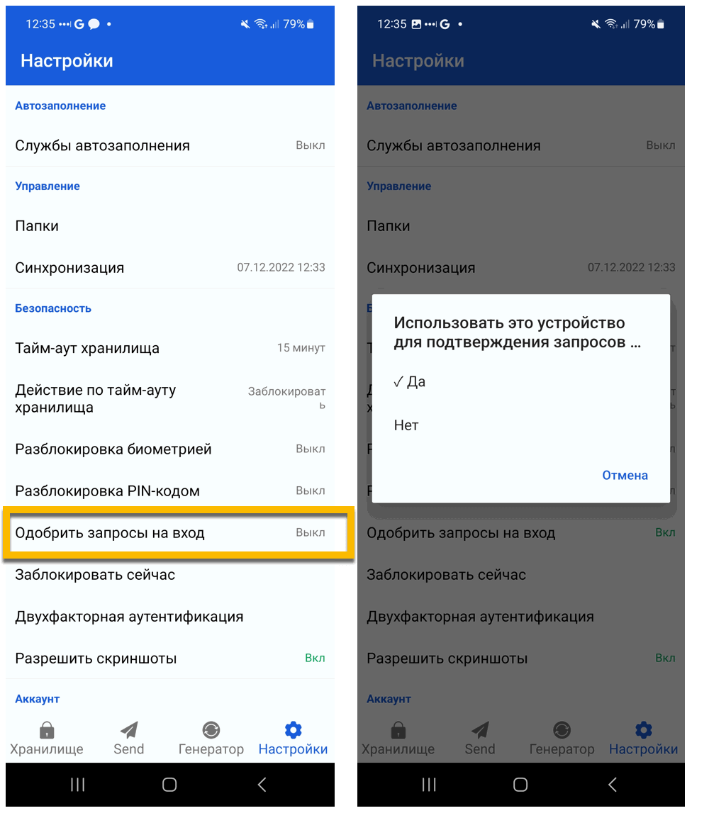 Данный шаг можно считать избыточным, ведь, чтобы подтвердить запрос на вход, хранилище вашего мобильного приложения должно быть разблокировано. Это невозможно сделать без знания мастер-пароля, PIN-кода или прохождения идентификации по отпечатку пальца. Если второй уровень безопасности уже есть, то зачем возиться с третьим. Это только замедляет процесс, особенно если вы используете стороннее приложение для кодов TOTP.