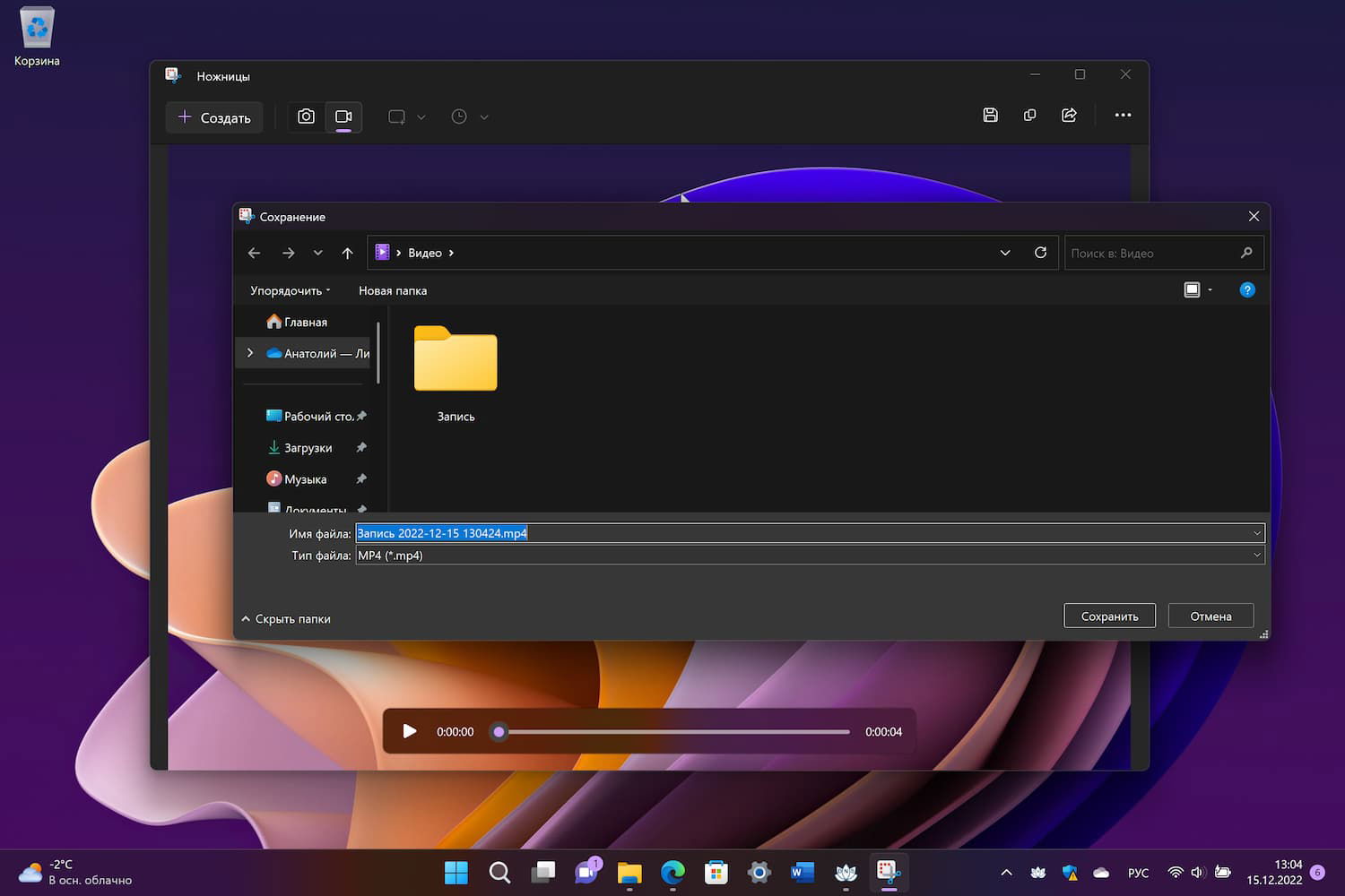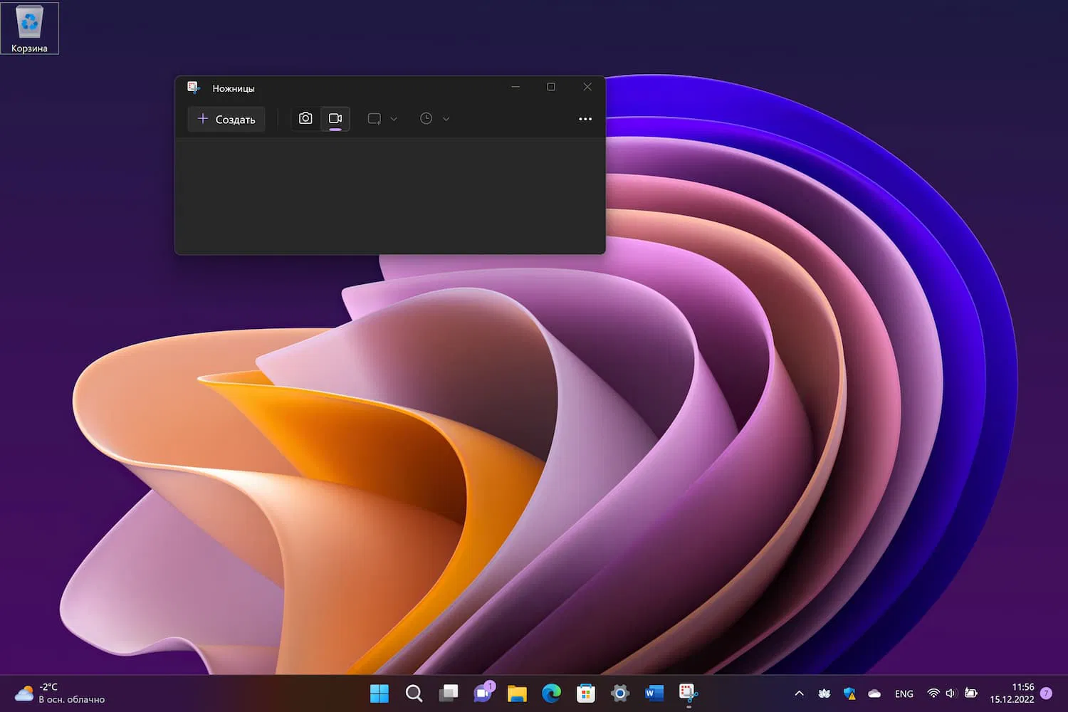 После выполнения этих действий, запустите «Ножницы» и вы должны увидеть новую функцию «Запись экрана» на верхней панели инструментов.