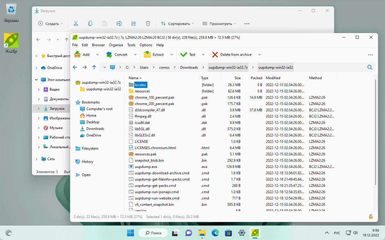 Интерфейс PeaZip стал лучше адаптироваться к изменениям размера, а в меню Вид появилась новая опция для отображения папок перед файлами.