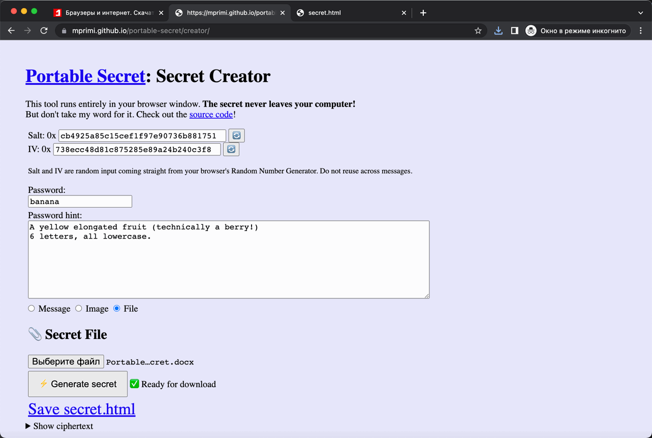 - Выберите Save secret.html, чтобы сохранить зашифрованную HTML-страницу в локальной системе.