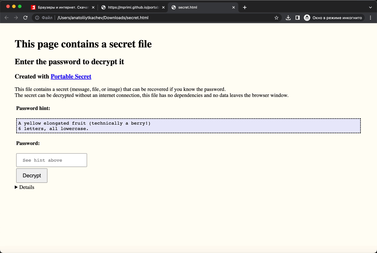 В отличие от многих других инструментов шифрования, таких как VeraCrypt или PGP, Portable Secret требует только наличия современного веб-браузера для расшифровки.