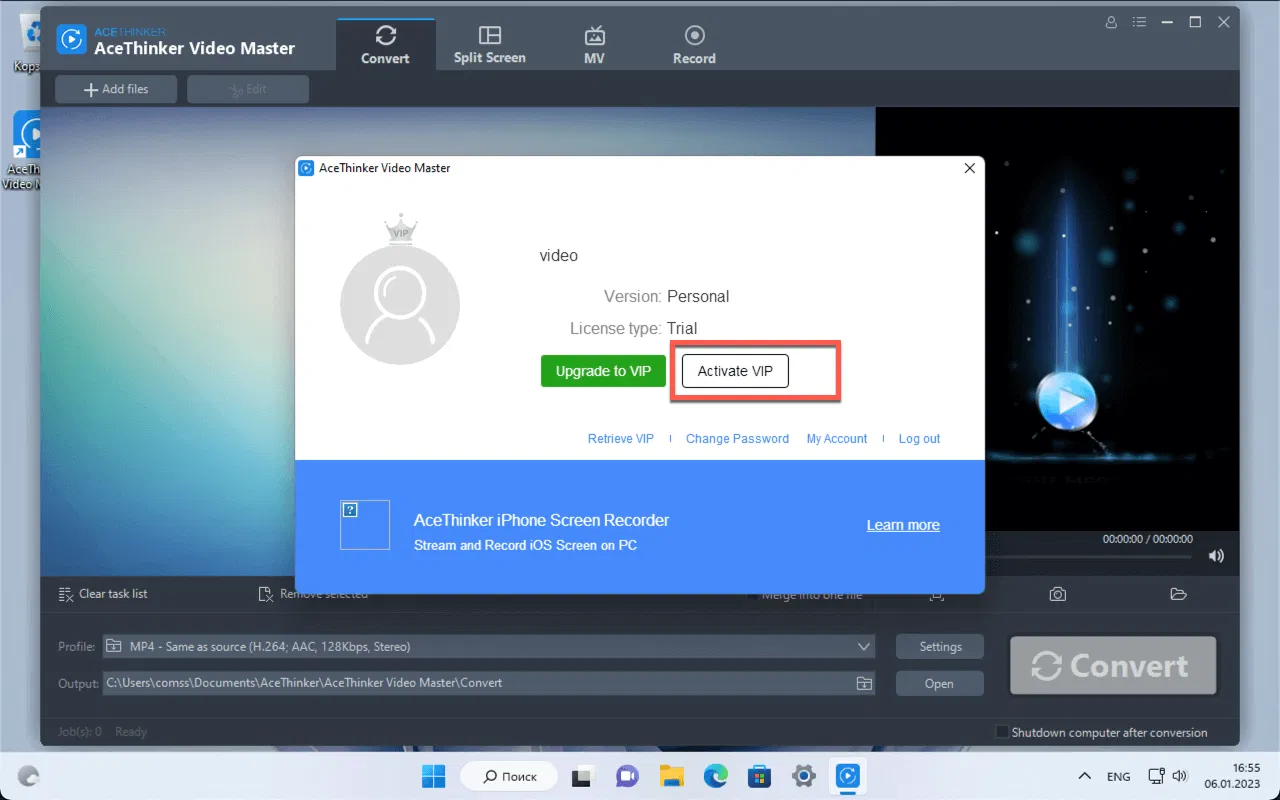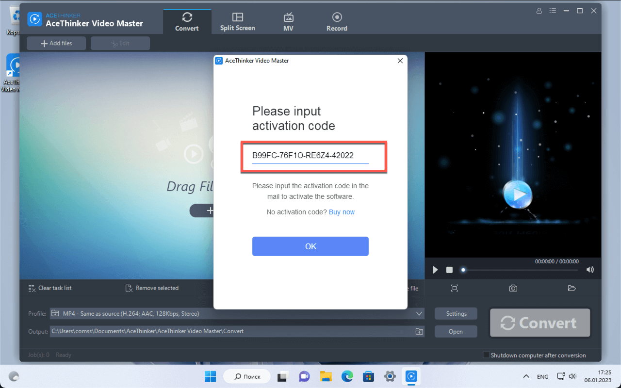 После этого будет активирована лицензия AceThinker Video Master на 1 год бесплатно.